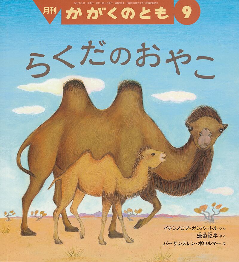 かがくのとも 2022年9月 642号 「らくだのおやこ」 イチンノロブ・ガンバートル/文 バーサンスレン・ボロムラー/絵 津田紀子/訳 福音館書店刊行