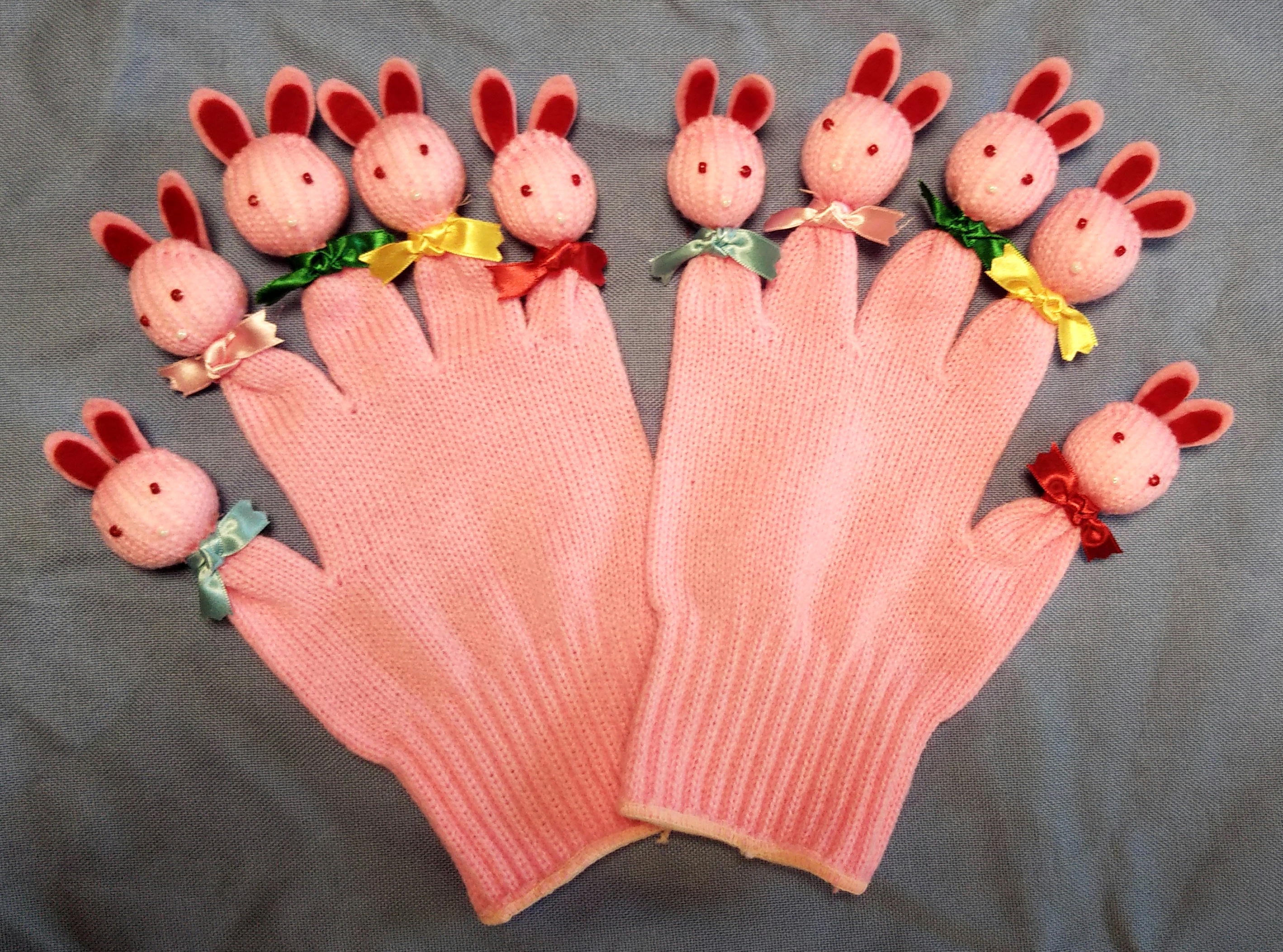 「アトリエ猪子山」のてぶくろ人形。お手製ならではのあたたかみと愛らしさで、おはなし会や子どもとのふれあいに大活躍!ていねいなつくりです。